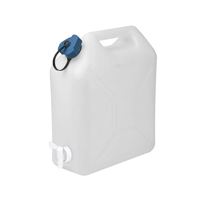 Jerricans alimentaires en plastique translucide, équipés d’un robinet.