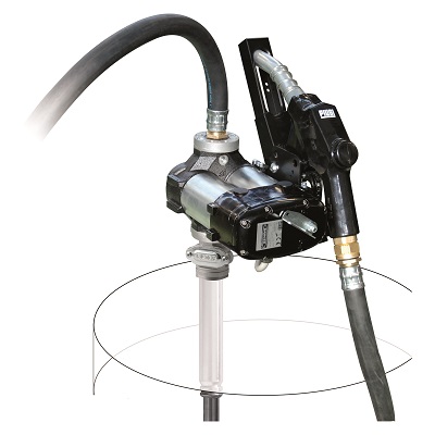 Groupe 12 volts pour le transfert de gasoil stocké en fût de 200 litres.